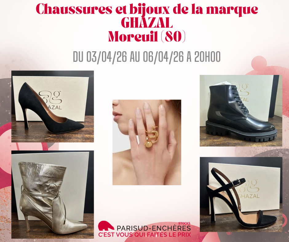 Bijoux et Chaussures de marque GHAZAL – Du 03/04 au 06/04 – Moreuil (80) – Expédition possible dans toute l’Europe