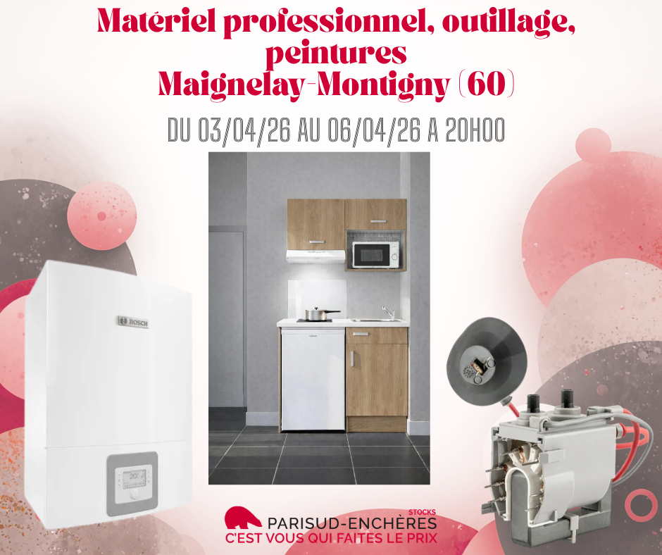 Matériel professionnel, outillage, peintures, kitchenettes et équipements du bâtiment – Du 03/04 au 06/04 – Retrait à MAIGNELAY-MONTIGNY (60)